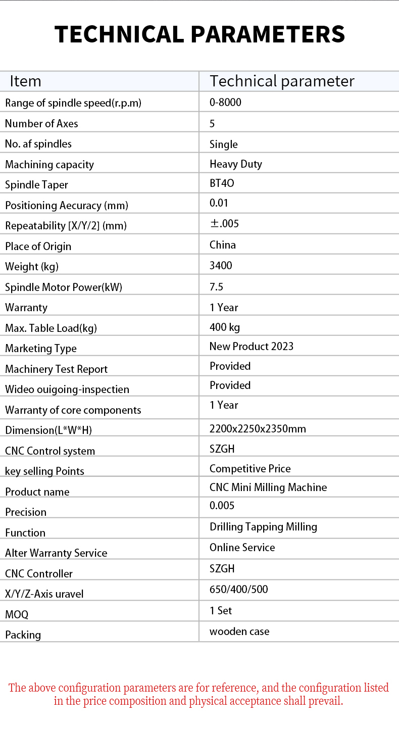 Parameters of VMC650 machining center/CNC vertical machining center